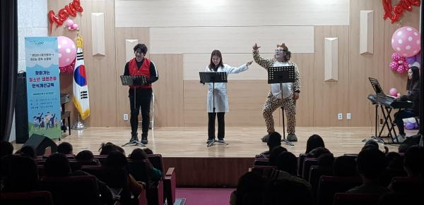 생명존중 및 뮤지컬 융합교육은 관내 예술인 육성을 위해 지역공동체 사업을 통해 지원하는 ‘찾아가는 뮤지컬단 A1’의 생명존중 창작 뮤지컬 ‘길고양이 루미’ 공연 관람 후 생명존중교육 전문가 강의로 진행됐다.