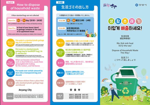 김광택 안양시자원순환과장은 최근 외국인 거주가 꾸준히 늘어나고 있어 이와 같은 안내문을 제작했다며 생활쓰레기 배출방법에 대한 이해도 증진과 무단투기 근절에 효과 있기를 기대한다고 전했다.