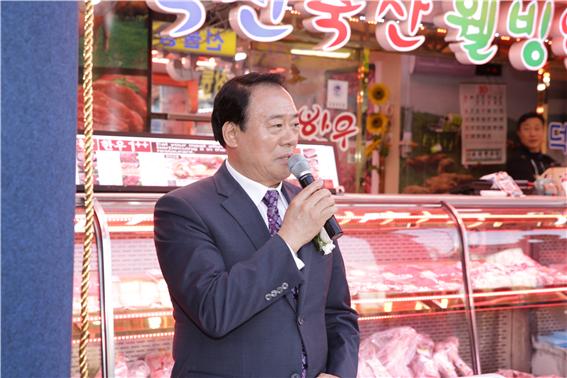 서울시의회 기획경제위원회 김달호 의원은 지난 1일 성동구 마장축산물시장에서 열리는 ‘온누리 모바일상품권 우수시장’ 현판식에 축사자로 나섰다.