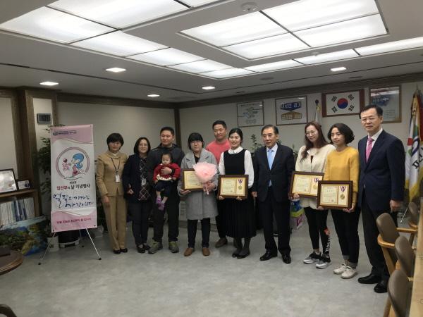 출산·양육 친화적 환경 조성에 기여한 유공자 4명은 “아이를 많이 낳아 표창을 받을 줄 몰랐다. 너무 행복하다”며 “임산부를 조금 더 배려하는 사회가 됐으면 좋겠다”고 말했다.