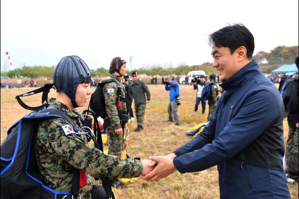 김상호 시장은 걷기대회 인사말에서“뒤로 남한산성, 오른쪽으로는 검단산을 배경으로 한강의 억세풀과 단풍이 어우러진 오늘, 제42회 특수전사령관배 고공강하대회와 시 승격 30주년 특전사와 함께하는 시민화합 걷기대회를 개최하게 되어 기쁘다”고 했다.