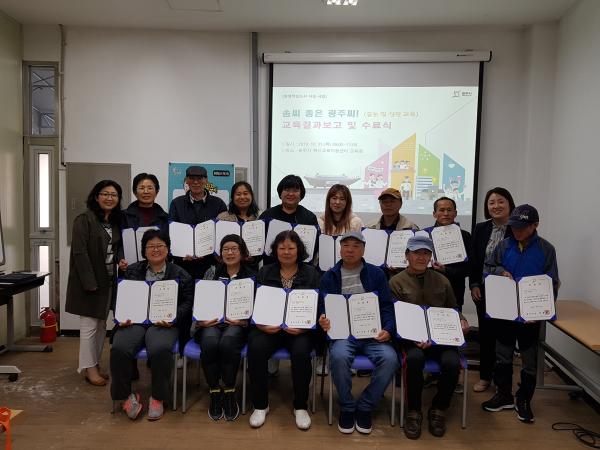 시 관계자는 “이번 교육으로 직업능력 교육을 지원해 일자리문제 해결과 배움을 통한 존재의 가치 향상이 이뤄졌길 바란다”며 “앞으로도 학습으로 성장하는 행복한 도시, 광주를 조성하기 위해 시민이 원하는 학습을 할 수 있도록 노력할 것”이라고 밝혔다.