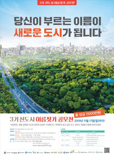 국토교통부는 수도권 주택시장 안정을 위해 발표한 ‘수도권 30만 호 공급계획’ 사업 중 신도시 등 총 8곳의 도시 및 단지 명칭 공모전을 오는 17일까지 진행한다고 4일 밝혔다.