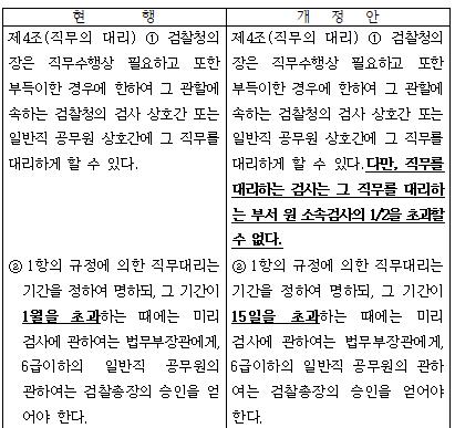 현행 ‘검찰근무규칙’에 의하면, 각 검찰청의 장은 파견기간이 1개월 이내인 경우에는 법무부장관의 승인없이 파견 명령을 자유롭게 할 수 있어, 그 기간을 축소해 내부파견을 더욱 제한할 필요가 있다고 밝혔다.