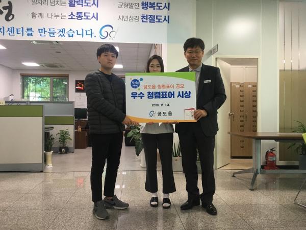 공도읍은 청렴표어 우수작 3건을 선정하고 4일 업무시작 전 친절교육과 함께 청렴표어 공모 우수 직원에 대한 포상을 실시했다.