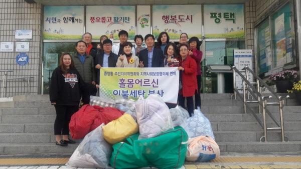 평택시 중앙동 주민자치위원회와 지역사회보장협의체는 지난 1일 거동이 불편한 홀몸어르신 15가구를 대상으로 이불세탁 봉사활동을 실시했다.