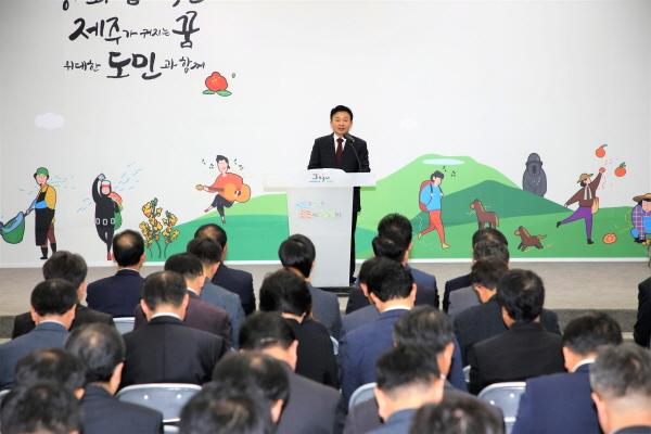 내년 정부 정책변화에 대한 선제적 대응도 강조했다. 원희룡 지사는 “내년 1월부터 50인 이상 300인 이하 사업장에도 주 52시간 근무제가 확대될 예정”이라며 “감귤거점산지유통센터 등 농가에 치명적인 타격이 올 것으로 예상됨에 따라 중앙정부와의 건의사항 점검에 대해서도 특별히 관심 가져달라”고 공직자들에게 주문했다.