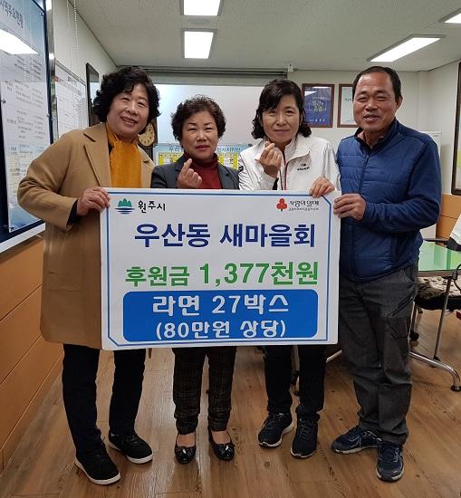 아울러 우산동 새마을 부녀회 기금으로 800,000원 상당의 라면 27박스도 함께 기탁했다.