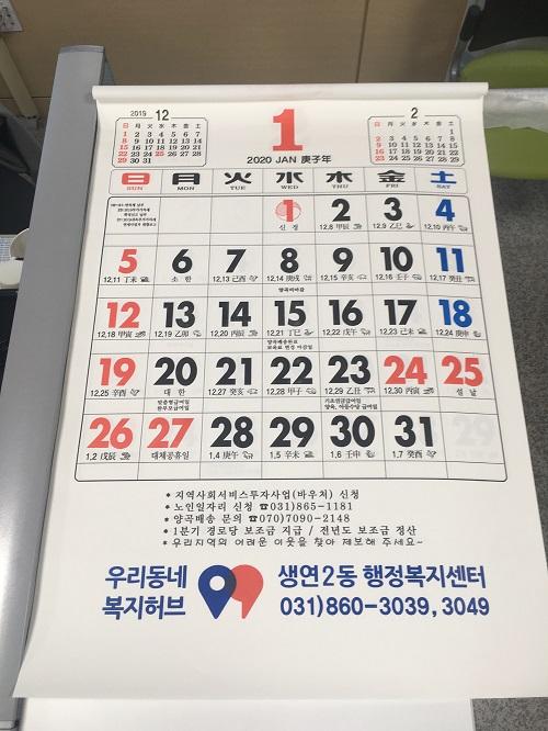 오천명 생연2동장은 “복지달력 제작 및 배포를 통해 복지정보 부족으로 인한 사각지대 발생 해소 및 수급권자 발굴이 기대되며 앞으로도 주민 복지서비스 만족도가 향상될 수 있도록 다양한 노력을 시도하겠다”고 말했다.