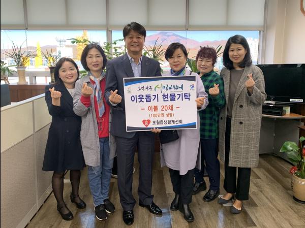 이날 이웃돕기 현물로 기탁된 이불은 올해 초월읍생활개선회에서 건강청 및 천연소금 판매 등을 통해 마련한 것으로 그 의미를 더했다.