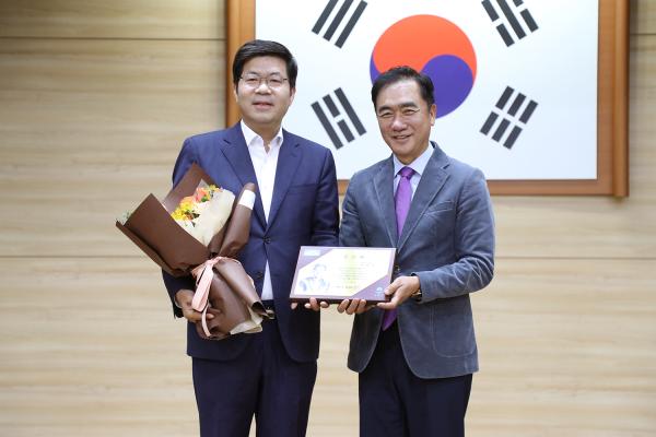 공로패는 정장선 시장이 직접 꽃다발과 함께 전달해 의미를 더했다.