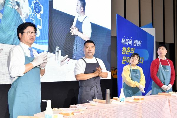 정책토크쇼에서는 염태영 시장과 개그맨 정종철씨가 청년들과 함께 샌드위치를 만들며 청년 정책, 저출산 문제, 공유경제 등을 주제로 이야기를 나눴다.