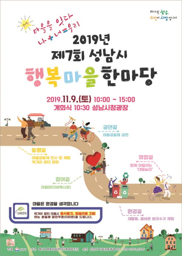 성남시는 오는 9일 오전 10시부터 오후 3시까지 시청 광장에서 시민 1000여명이 참여한 가운데 ‘제7회 행복마을 한마당’ 행사를 연다.