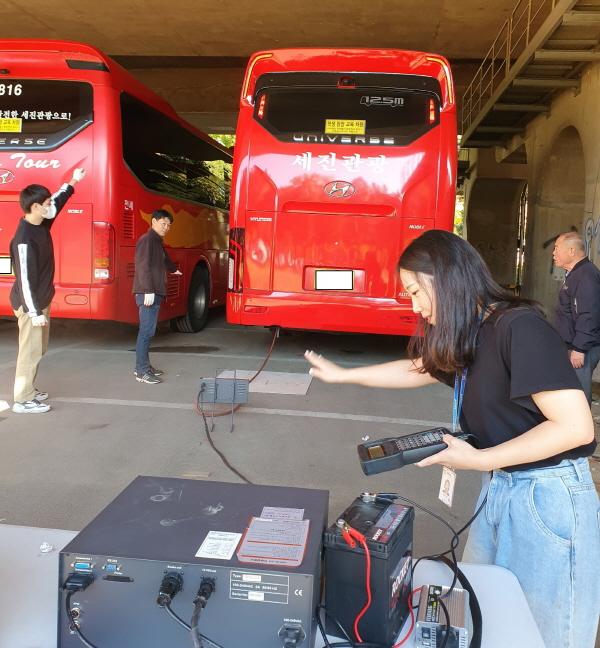 미세먼지 저감 위한 관광버스 대상 자동차 공회전 제한 홍보 병행