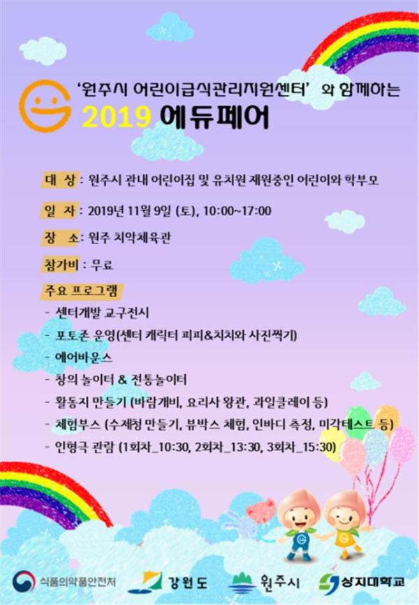 원주시 어린이급식관리지원센터와 함께하는 어린이 체험학습 프로그램 ‘2019 에듀페어’가 오는 9일 오전 10시부터 오후 5시까지 원주 치악체육관에서 개최된다.