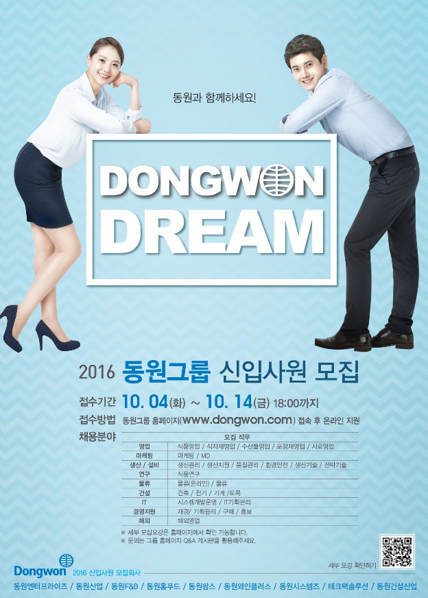 원서접수는 오는 14일(금) 오후 6시까지 동원그룹 홈페이지를 통해 할 수 있다.