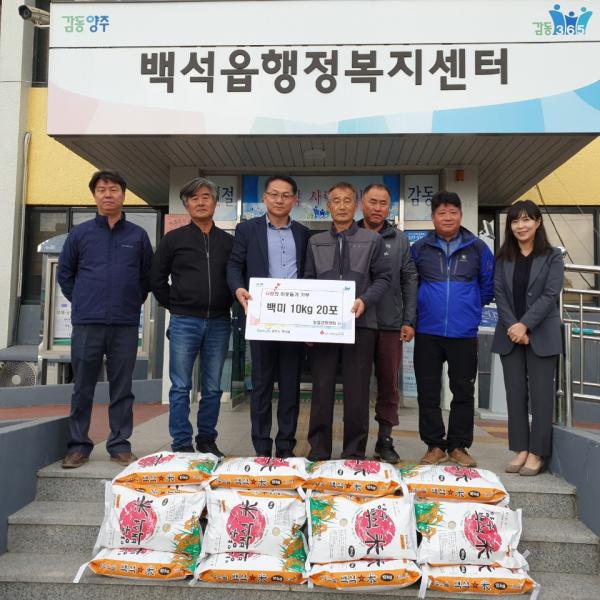 양주시 백석읍 농업경영인회는 지난 5일 백석읍행정복지센터를 방문해 지역 내 생활이 어려운 이웃들에게 전달해 달라며 백미 10kg 20포를 기부했다.