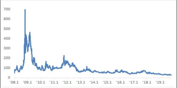 5월 이후 미-중 무역갈등 고조 등 대외불확실성이 확대되면서 38bp까지 상승하기도 했으나, 이후 전반적으로 안정세를 보이며 30bp대 초반에서 등락했다.