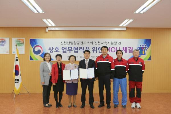 MOU체결은 진천산림항공관리소 심태섭 소장과 진천교육지원청 이재명 교육장 등 관계자 10여명이 참석한 가운데 6일 10시에 진천산림항공관리소에서 MOU를 체결 했다.