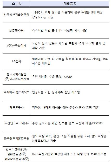 ‘올해의 10대 기계기술’에는 그간 해외의존도가 높았던 중형 굴착기용 메인 컨트롤 밸브 제작기술, 가스터빈 블레이드 제작기술 등 10개의 기술이 선정되면서 그간의 국산화 기술개발 성과와 국산 제품의 우수성을 알리는 계기가 됐다.