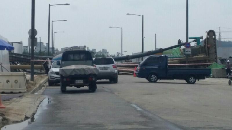 -시흥시 배곧3로 122 중앙프라자 공사현장에서 대형 항타 항발기 전도사고