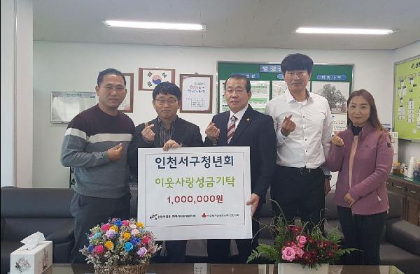 인천서구청년회는 지난 1일 이웃돕기 성금 100만원을 신현원창동 지역사회보장협의체에 기탁했다.