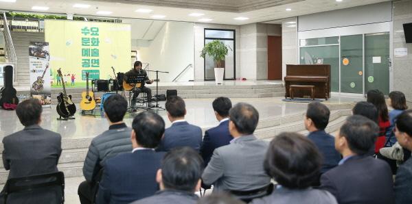한편 수요 문화예술공연은 공연장소가 필요한 지역 예술인들에게 공연 기회를 제공하고 직원들에게는 힐링의 시간을 제공하기 위해 매주 수요일 점심시간마다 열리고 있다.
