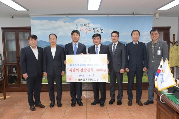 한편 최용덕 동두천시장은 “항상 어려운 분들을 먼저 생각하고 꾸준한 선행을 이어나가고 계신 농협중앙회 동두천시지부 관계자 모든 분들에게 이 자리를 빌려 감사드린다”는 소감과 함께 “기탁해 주신 김장김치는 관내 다문화가정과 어려운 이웃들이 건강한 겨울나기를 할 수 있도록 잘 전달해 드리겠다”는 감사의 인사를 전했다.