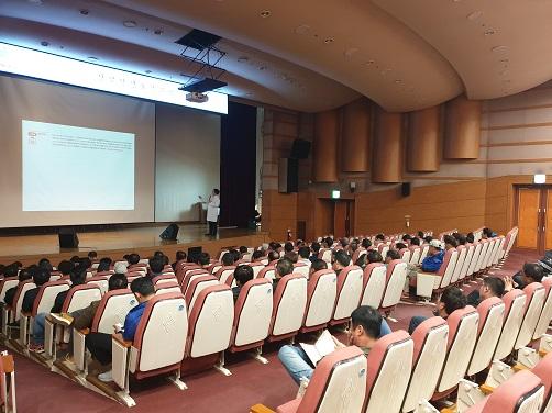 이번 교육은 산업안전보건법에 따라 실시하는 교육으로써 가천대길병원 이완형 직업환경의학과 교수의 강의로 진행됐고 근로자들에게 안전·보건관리 능력 향상 및 지식 습득의 기회를 마련해 자신의 건강을 되돌아볼 수 있는 기틀을 다지는 의미 있는 자리였다.