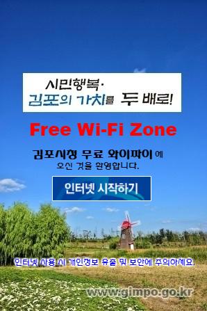 김포시의 공공 와이파이는 기가인터넷 기반의 빠른 속도와 보안이 강화된 무선데이터 서비스가 강점이다. 스마트 기기의 무선 네트워크 검색목록에서 ‘GimpoCity_Wifi_Free’에 접속 후 시정홍보 이미지를 클릭하면 별도의 인증절차 없이 무료로 사용할 수 있다.