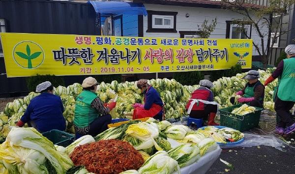오산시 새마을부녀회는 지난 4일부터 5일까지 오산시 새마을회관에서 오산시 관내 사회적약자를 대상으로“사랑의 김장 담가주기” 행사를 개최했다.