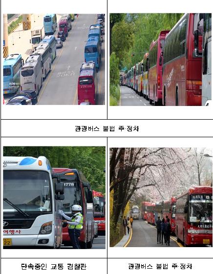 관광버스 운전기사가 관광일정과 유류비 절약 등을 사유로 도로를 무단 점거하고 장시간 주차하면서 시동을 켜고 차량을 공회전하는 등 불법행위는 근절키로 했으며 중장기적으로는 관광버스 전용주차장 확보를 추진하고 있다.