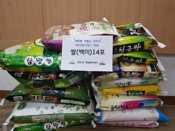 ㈜케이에스테크는 지난 5일 정왕2동 행정복지센터를 통해 백미 14포를 전달했다.