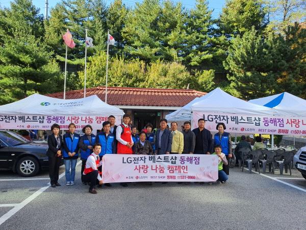 이번 나눔은 LG전자베스트샵 동해천곡점에서 150만원 상당의 점심식사와 사은품을 제공하고 LH주공5차 아파트 사랑의 봉사대의 지원으로 경로당 어르신들께 맛있는 점심을 대접하며 노고를 위로하는 의미 있는 시간을 가졌다.