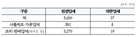 총 3,600곳 점검…식품위생법 위반 업체 27곳 적발