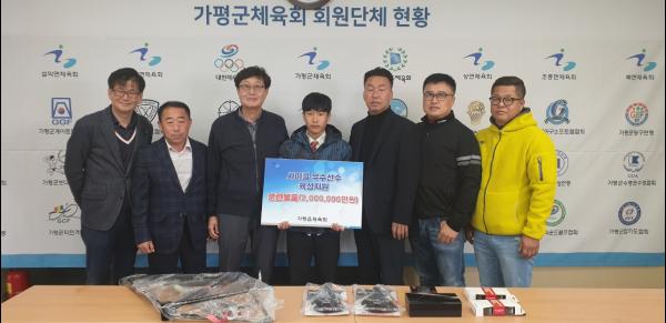 김종남 가평읍 체육회장은 “윤건영 학생에게 더 큰 꿈을 꿀 수 있도록 훈련물품을 지원하게 되어 무척 기쁘다. 보다 나은 여건 속에서 훈련에 매진해 마음껏 기량을 펼칠 수 있기를 기대한다”고 말했다.