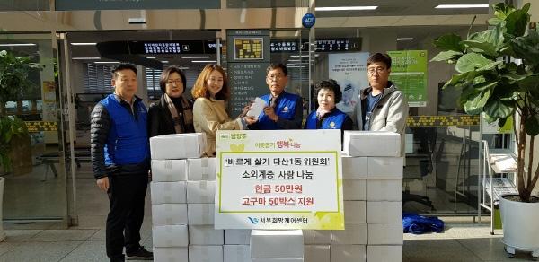 남양주시 서부희망케어센터는 지난 6일 다산1동 바르게살기협의회에서 고구마 50박스와 후원금 50만원을 전달했다고 7일 밝혔다.