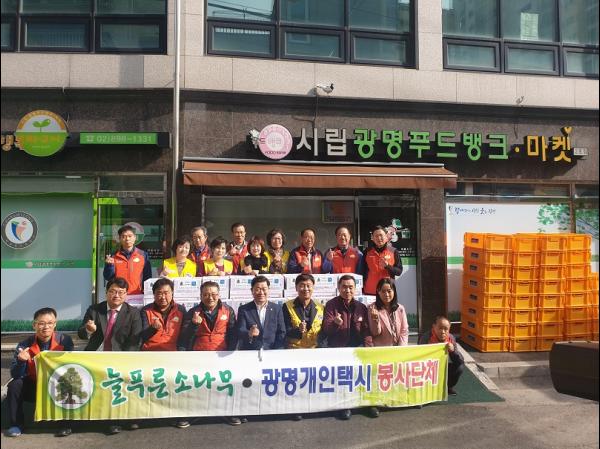 늘푸른소나무봉사단은 2012년 광명개인택시 운전자들이 자발적으로 모여 창단한 자원봉사단체로 현재 30여명의 회원들이 매달 회비를 모아 지역 내 생활이 어려운 이웃들을 위해 기부하고 있다.