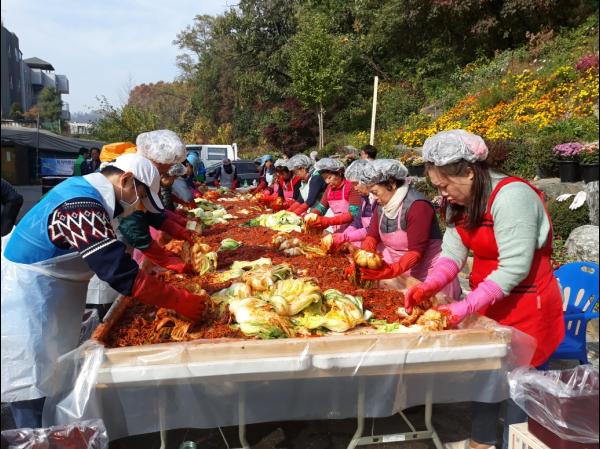 이날 행사는 김장철을 맞아 관내 어려운 이웃에게 나눠줄 김장을 만드는 것으로 새마을부녀회 회원 20여명과 교문1동 기간단체 회원 30여명 등 50여명이 참여했다. 이날 참가자들은 담근 김치는 총 300포기로 관내 독거노인과 저소득·장애인 가구 등 150여 가구에 전달됐다.
