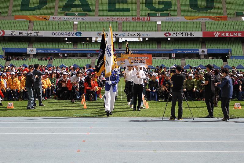| 2016년 전국지체장애인체육대회 기수단이 입장하고 있다. (사진제공: 한국지체장애인협회) |