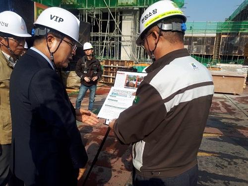 또 안전장비 착용, 장시간 외부 작업 지양을 당부하는 등 근로자의 건강과 안전을 챙기고 미세먼지로 인한 애로사항을 청취했다.