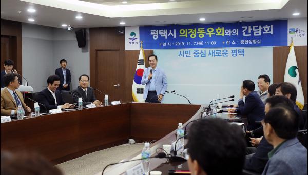 평택시는 7일 시청 종합상황실에서 평택시 의정동우회 회원과의 정책 간담회를 개최했다.
