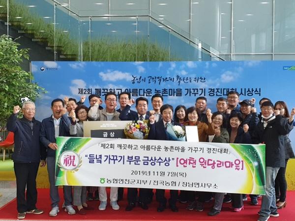 장남면 원당리마을은 7일 서울 서대문구 농협 중앙회 본관에서 열린 ‘제2회 깨끗하고 아름다운 농촌마을 가꾸기 경진대회’에서 금상을 수상했다고 밝혔다.