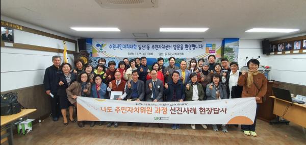 이번 워크숍은 수원시민자치대학의 주민자치 수강생들이 주민자치사업 선진 기관인 일산1동 주민자치센터를 방문해 주민자치 역량 강화 및 운영 노하우를 청취하고 주민자치 우수사례·정책 등을 공유하고 상호 주민자치센터 활성화를 도모할 수 있는 계기가 됐다.