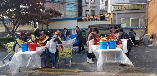 이날 행사에는 통장협의회가 배추 500포기, ㈜정탑농산이 고춧가루 60kg, 광명박스가 박스 200개를 후원했다. 단체장협의회는 자발적으로 후원금을 모아 흔쾌히 기부했다.