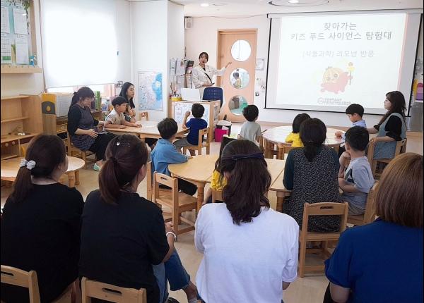 이번 프로그램은 지난 2월 식품의약품안전처에서 주관한 어린이급식관리지원센터 우수사례 공모전에서 우수사례로 선정된 프로그램으로 식품과학 원리를 재미있는 동화책 및 애니메이션에 융합하고 영양·위생 분야와 연계 교육이 가능한 콘텐츠로 개발해 학부모 참관 프로그램 시 ‘리모넨 반응’을 주제로 한 식품과학 실험교육을 애니메이션 시청과 실험활동으로 구성됐다.