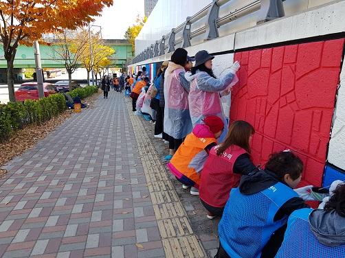 영종공감복지센터는 운서동 행정복지센터와 공동주관으로 지난 7일 운서역 공영주차장 옹벽에 ‘살고 싶은 마을 행복 운서동 마을 만들기’라는 주제로 벽화그리기를 실시했다.