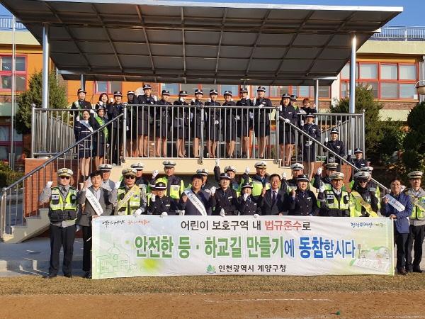 이번 캠페인은 박형우 계양구청장을 비롯해 계양구녹색어머니연합회, 인천계양모범운전자회, 계양경찰서 해당 학교 교사 등 70여명이 등교시간에 맞춰 아이들의 안전한 통학로 확보를 포함해 어린이 보호구역 안전 운전 홍보를 실시했으며 등교하는 학생들에게는 “멈춘다, 살핀다, 건넌다” 문구가 새겨진 홍보물품을 나누어 주어 횡단보도 안전 보행을 유도했다.