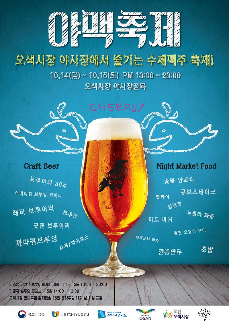 [미디어타임즈= 신정식 기자] 전국 8개 브루어리 26종의 맥주와 야시장의 음식, 12팀의 뮤지션이 어울리는 ‘야맥축제(오색시장 야시장에서 즐기는 수제맥주 축제)’가 오는 14(금) ~ 15일(토) 오산오색시장에서 열린다.