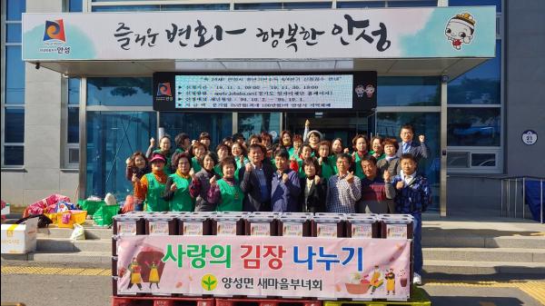 정상진 양성면장은 “지난 추석 쌀 120포 기부에 이어 이번 김장김치 비용을 기부해 주신 익명의 독지가와 적극적으로 봉사활동을 해주신 새마을부녀회 회원들께 감사드린다”며 “주민 모두가 함께 더불어 사는 따뜻한 지역사회를 만드는데 지역의 구성원 모두가 최선을 다할 것”이라고 전했다.